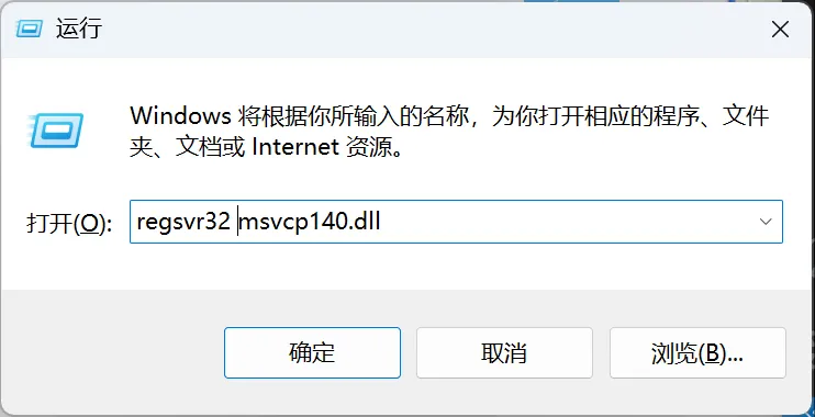 下载好后输入regsvr32 msvcp140.dll,点击确认或按回车都可以。