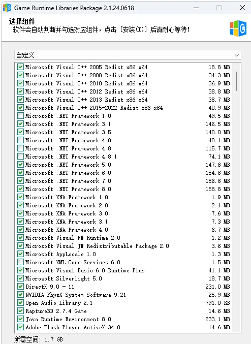 基本满足比如 DirectX报错,Runtime Enviroment等