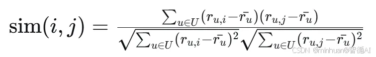 与余弦相似度不同,皮尔逊相关系数考虑了用户平均评分的影响,因此能够缓解用户评分严格度不同带来的偏差,能更准确地反映用户品味的相似性。例如,有些用户习惯打高分,有些用户习惯打低分,皮尔逊相关系数能够消除这种个体差异的影响。