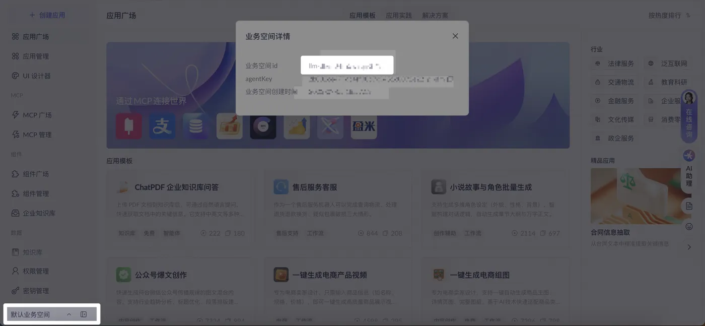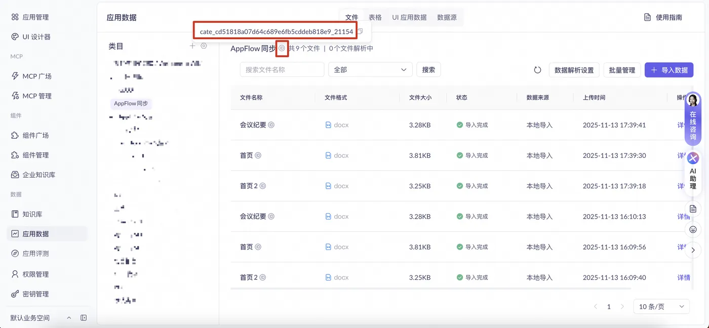 - 回到AppFlow点击下一步,填写百炼业务空间ID和需要同步文档应用数据目录ID。
