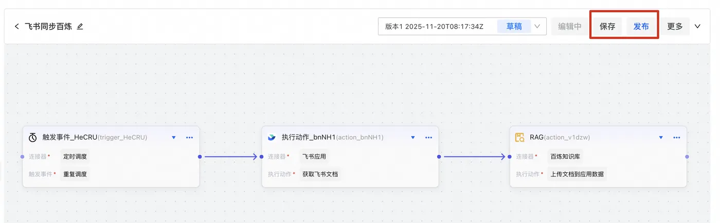 计算巢AppFlow现在提供自动化流程,通过定时触发的方式帮助您以不同频率自动同步飞书文档到百炼知识库中做RAG检索,节省大量人工维护知识库成本。