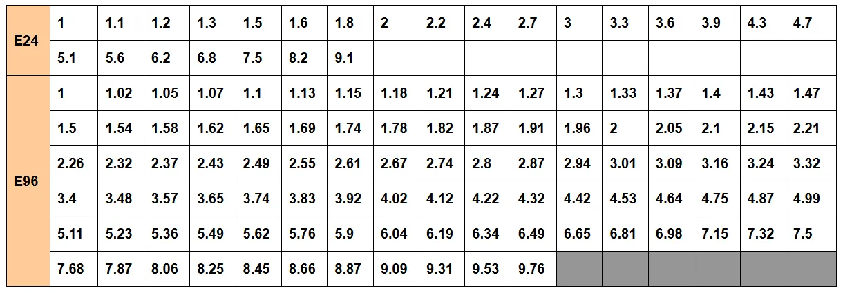 E24系列适用于允差±5%的误差,E96系列允许±1%的误差。