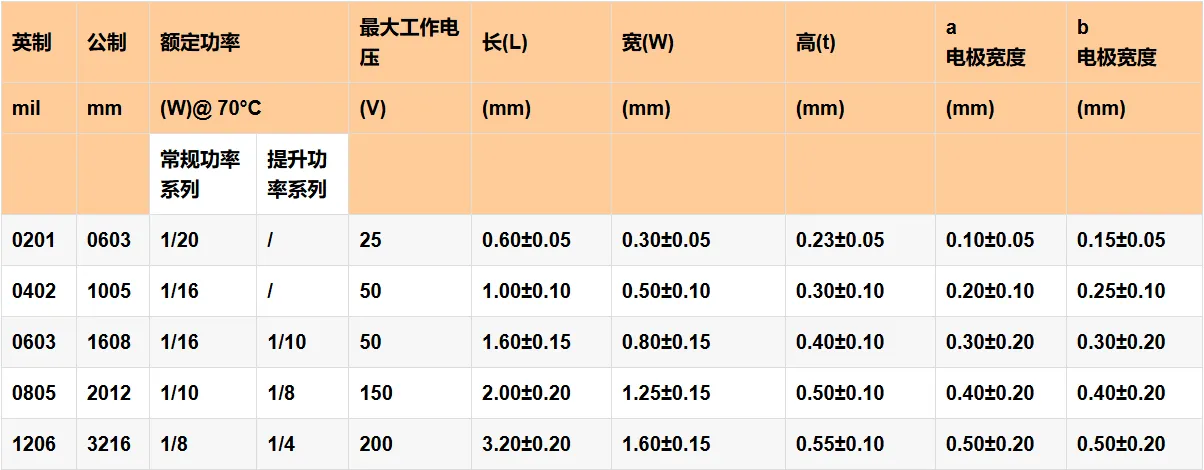 0201、0402、0603、0805、1206封装,目前用得较多的是0402、0603封装,选用小封装电阻可以节省空间,方便后期PCB/FPC布线。