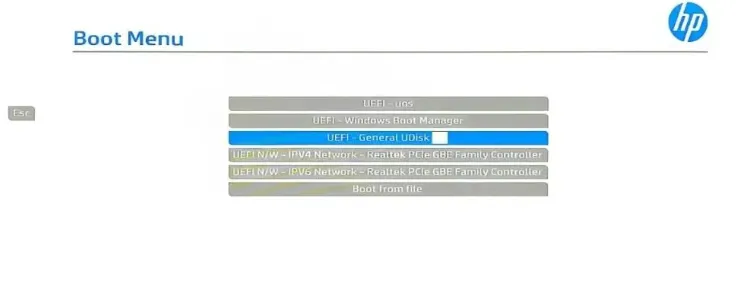 5、将制作好的U盘插入电脑U口,开机按“热键(ESC、F2、F7、F12、Delete键等)”,选择U盘启动,如下图所示;更多进入U盘启动的方式可参考