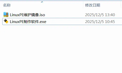 1、首先需要提前准备一个容量至少为8G的U盘。然后找一台Windows系统电脑,下载【LinuxPE制作软件】和【LinuxPE维护镜像】,如下图所示;