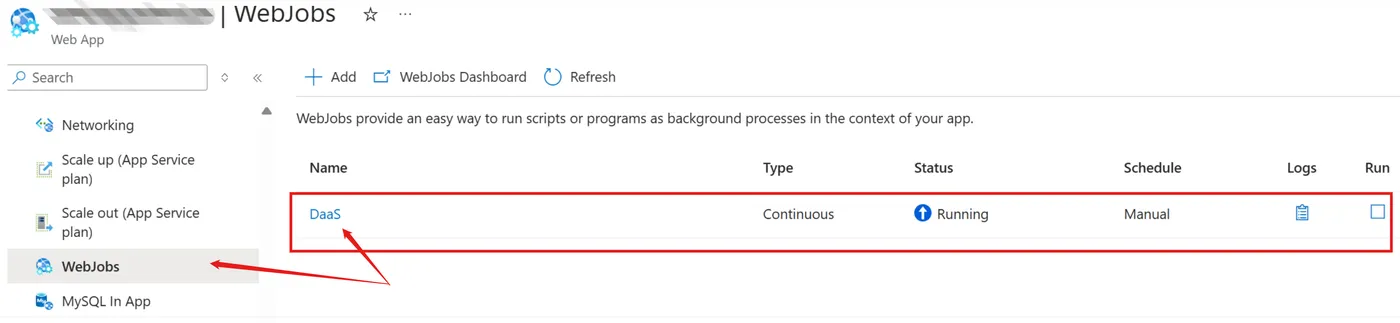 在 Azure App Service 环境中,发现App Service服务在无人操作的情况下,凭空出现了一个名为 “DaaS” 的 WebJob。