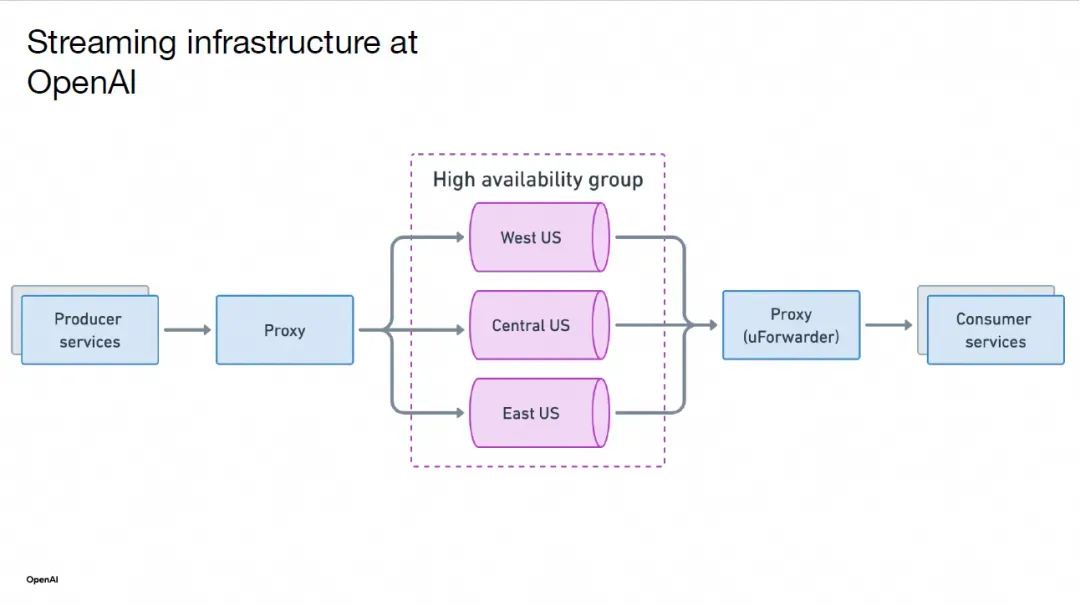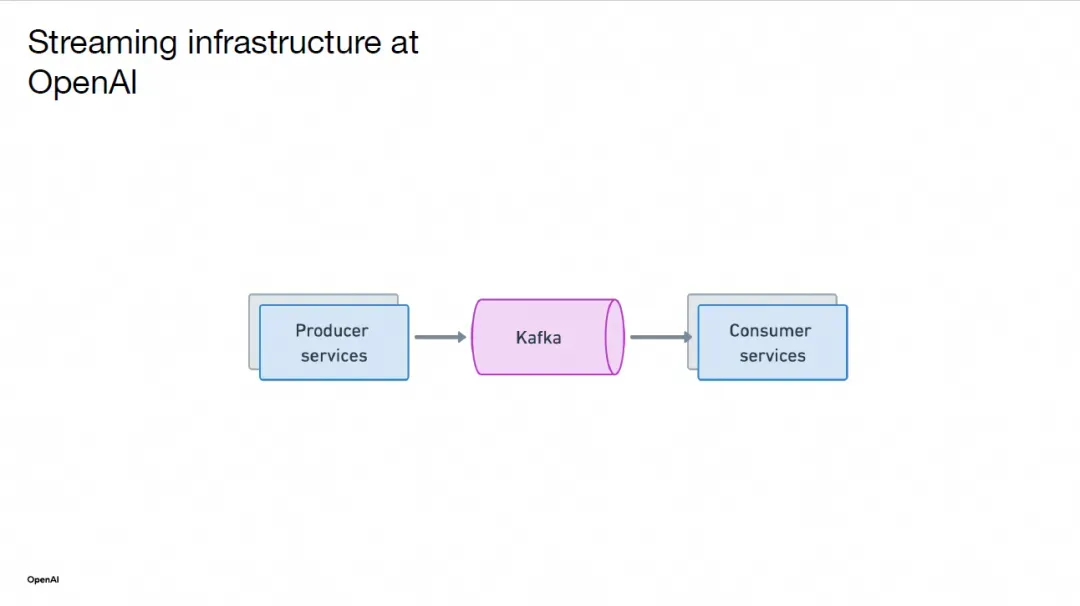 回顾一年前,OpenAI 的流式基础设施主要围绕 Kafka 及其生产者和消费者服务构建。Kafka 被广泛用于数据摄入、异步处理和服务间通信。随着 ChatGPT 的上线,Kafka 需求迅速增长,已成为支撑众多关键业务的核心基础设施之一。