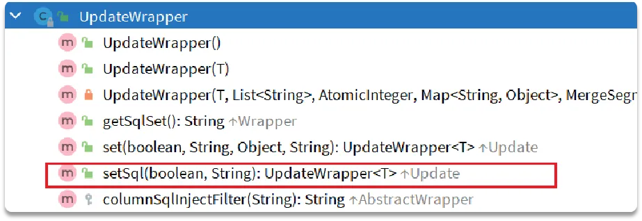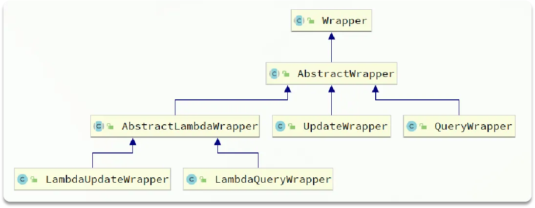 在这个体系中,AbstractWrapper定义了各种查询的条件,如:eq、in、between、like、gt、lt等。也就是说借助于他可以完成单表各种场景的查询条件组装。那为什么他又有QueryWrapper、UpdateWrapper呢?这是因为我们一个完整的查询语句是:SELECT 字段 FROM 表名 WHERE 条件