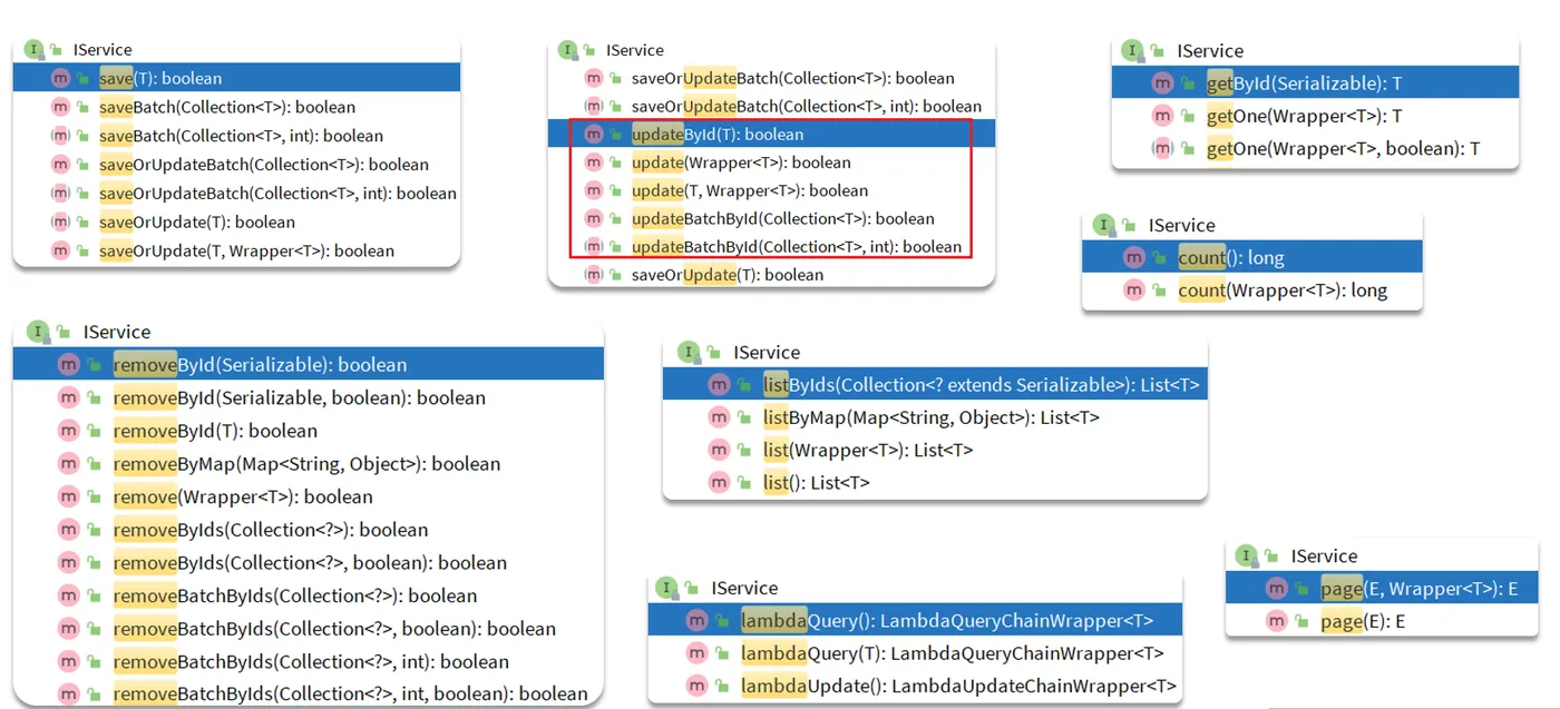MyBatisPlus支持各种复杂的where条件,可以满足日常开发的所有需求。当我们继承BaseMapper之后,就具备了一些常见的接口方法