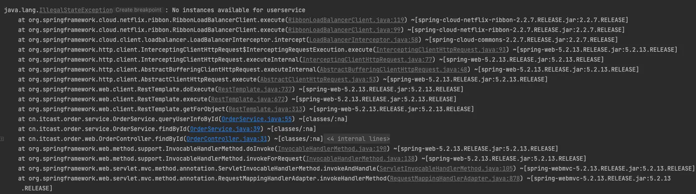 注意:此时需要将OrderApplication中的代码声明式负载均衡策略注释或删除(约定大于配置),否则失效