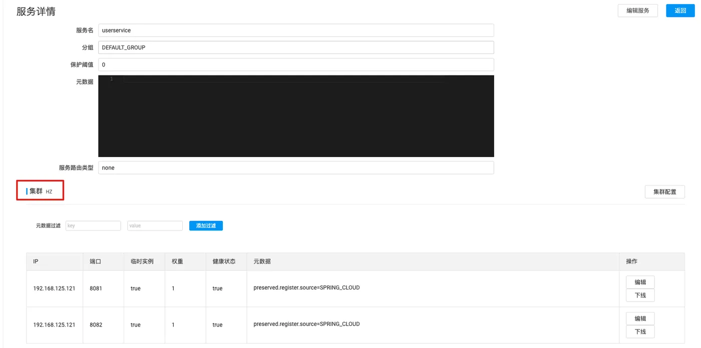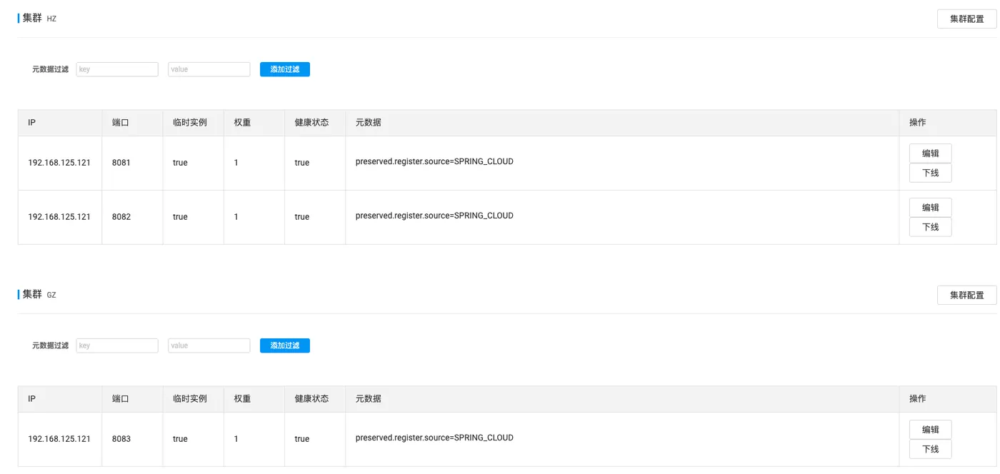此时查看Nacos服务信息会发现,已经有了两个集群信息。