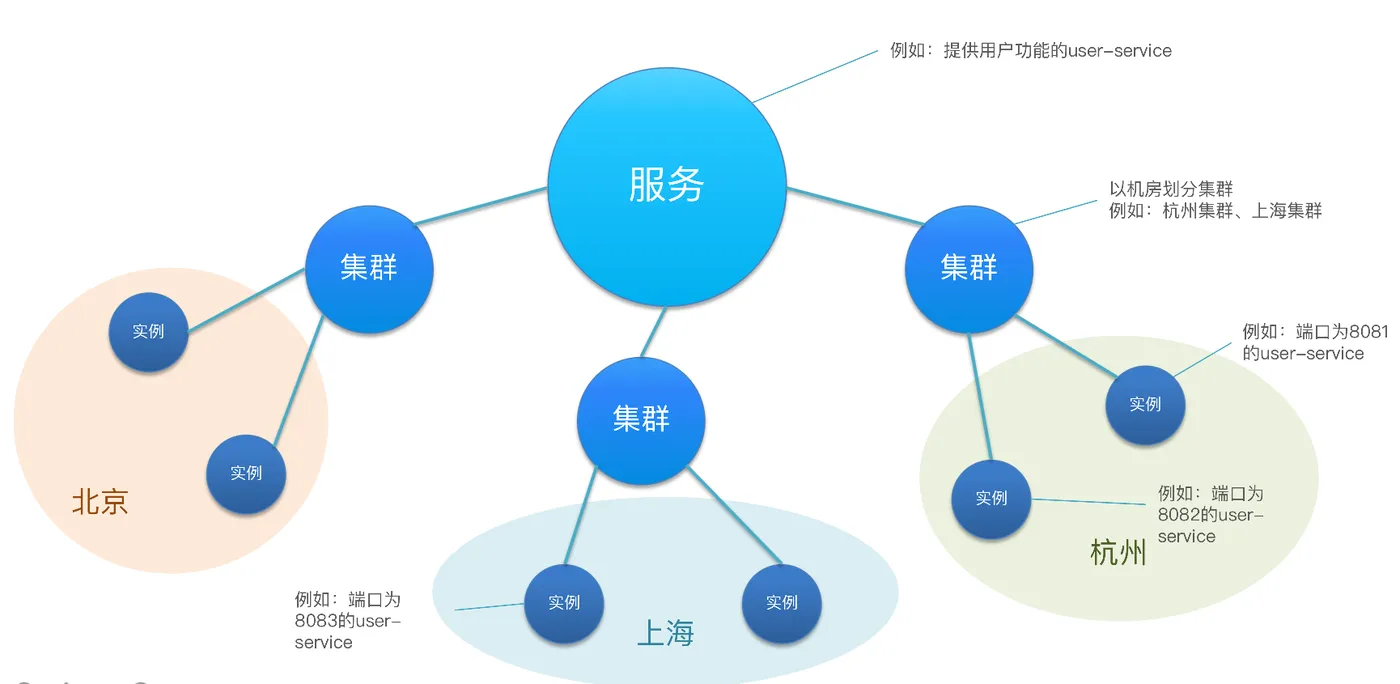 不同于Zookeeper没有针对服务发现设计数据模型,它的数据是以一种更抽象的树形K-V组织的,因此理论上可以存储任何语义的数据。而Eureka或Consule都做到了实例级别的数据扩展,这能满足大多数场景但无法满足大规模和多环境的服务数据存储。Nacos经过多年经验后提炼出上述模型,其特点在于:服务-集群-实例三层模型,可以满足所有场景下的数据存数和管理。