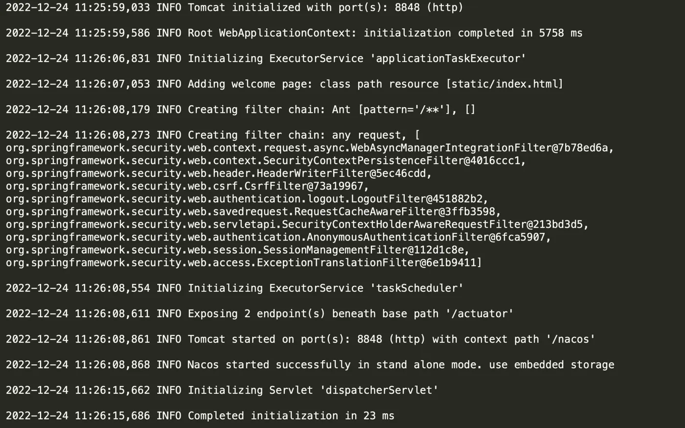 - windows可至路径:nacos/logs/nacos.log 查看具体错误信息,正常启动日志如下