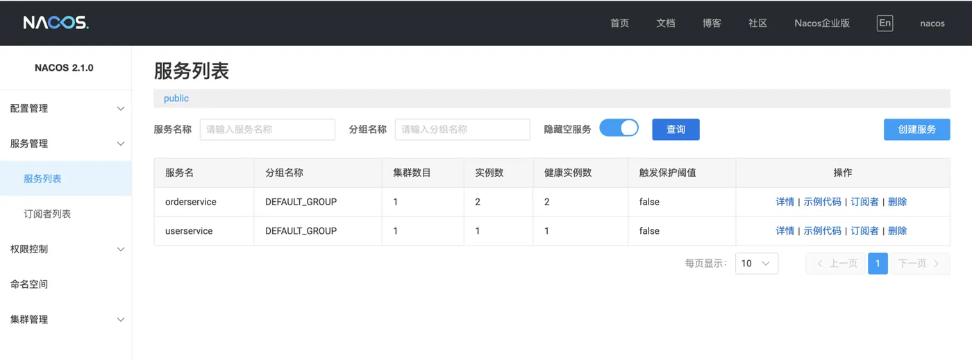 启动应用后访问Nacos会发现服务已完成注册