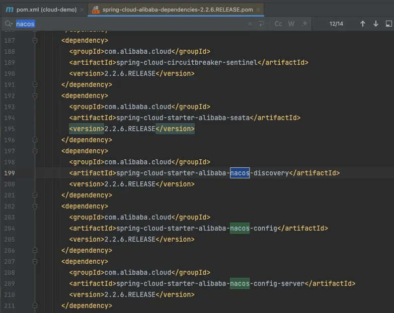 <!--nacos依赖--> <dependency> <groupId>com.alibaba.cloud</groupId> <artifactId>spring-cloud-alibaba-dependencies</artifactId> <version>2.2.6.RELEASE</version> <type>pom</type> <scope>import</scope> </dependency>