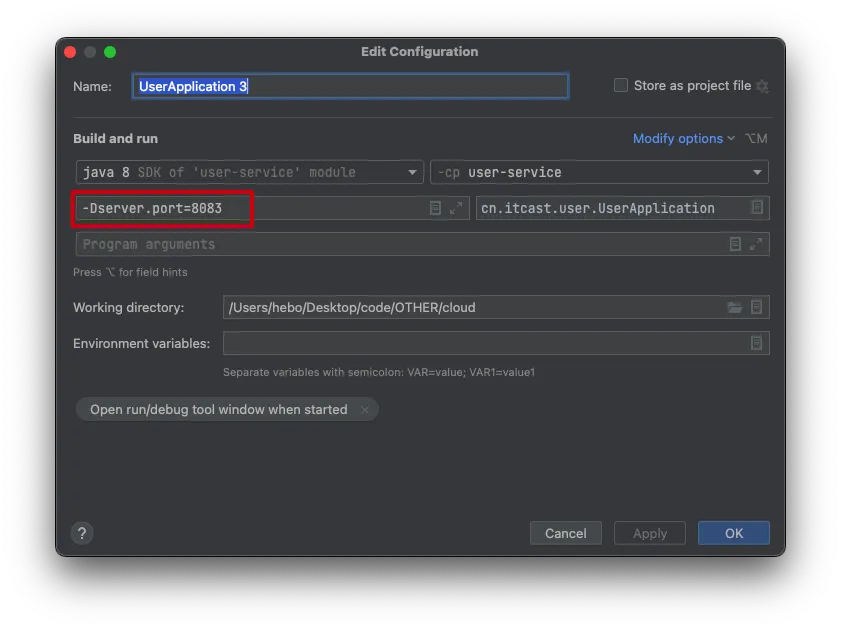 - 复制一个新的userApplicatio3启动类,设置其启动端口:-Dserver.port=8083