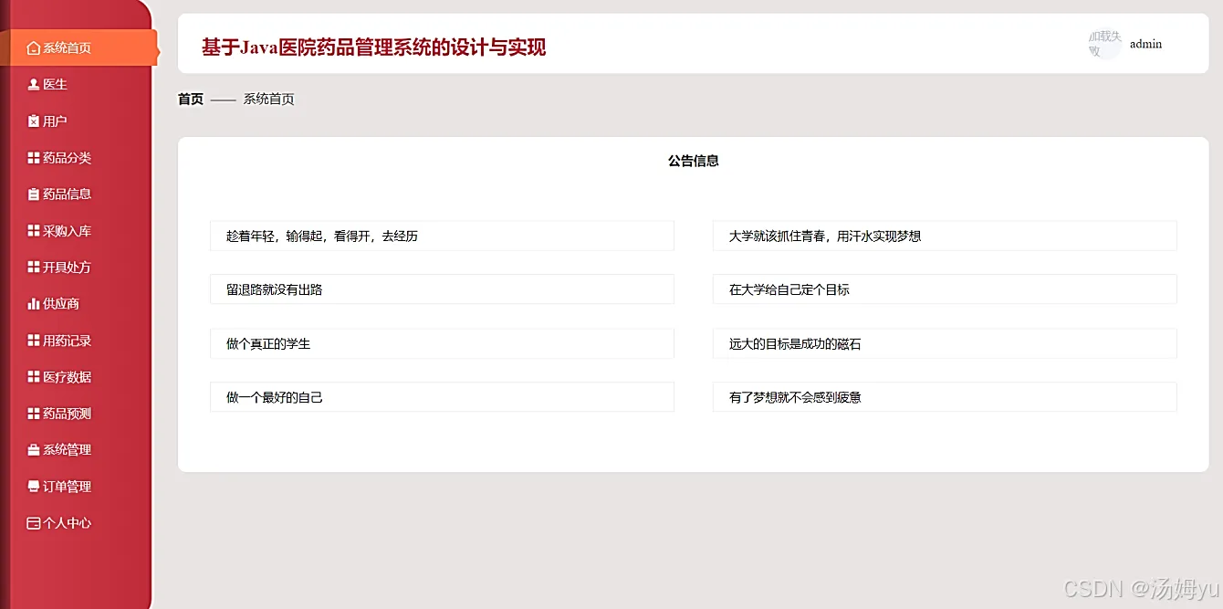基于Java对医院药管系统进行开发的意义包括以下几点。在医院领导方面,可以实现医院药物信息化管理,提高医院药品管理的工作效率,药品库存信息能够自动进行预警,使得医院能够及时地对库存药品的信息有了解,及时地对库存药品进行采购管理,避免出现医院药库缺货的问题,降低医院库存成本,系统所提供的各种报表信息,为医院领导提供参考依据,对医院的药品管理进行优化,提高医院的管理效率。从患者服务端看,正确的药品管理可以确保安全有效的用药,系统能够避免因药品信息错误导致用药错误,保障生命安全;正确的药品管理可以确保患者能够合理合法地获得用药服务,提高患者的就医满意度。从行业发展的角度来讲,基于Java医院药品管理系统的推广和运用,能够促进医疗行业的信息化发展,促进医疗资源的高效配置和利用,提升整个医疗行业的服务和管理水平。基于Java医院药品管理系统设计研究具有重要意义。