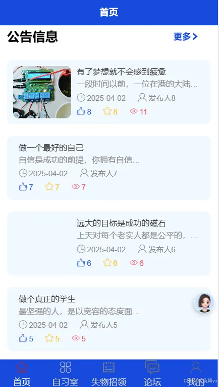 随着高等教育的普及和学习需求的不断增长,自习室作为学生学习的重要场所,其资源分配与管理面临着诸多挑战。传统自习室管理模式通常依赖人工登记和口头预约,不仅效率低下,还容易出现信息不对称、座位资源浪费等问题。特别是在考试周或复习高峰期,自习室座位供不应求,学生往往需要花费大量时间和精力寻找可用座位,严重影响学习体验和效率。传统管理方式难以实时监控自习室的使用情况,难以实现资源的动态调整和优化配置。开发一套高效、便捷的自习室预约管理系统,以数字化手段优化自习室资源配置,已成为提升校园服务质量、满足学生学习需求的迫切需求。