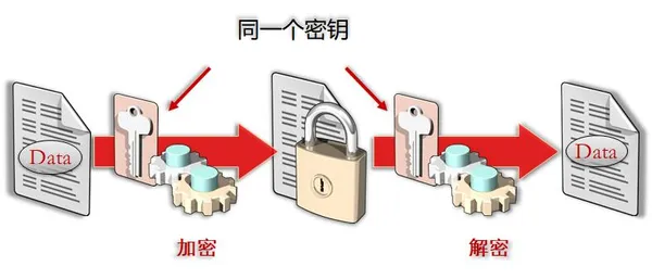 - 工作原理: 加密和解密使用的是同一把密钥。发送方用密钥A把明文锁成密文;接收方必须用同一把密钥A才能把密文打开恢复成明文。