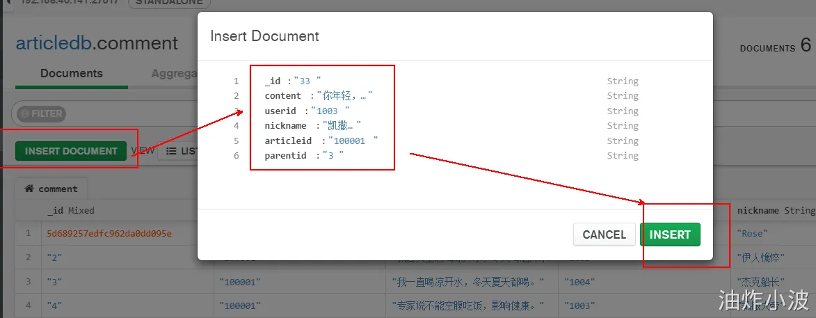使用compass快速插入一条测试数据,数据的内容是对3号评论内容进行评论。