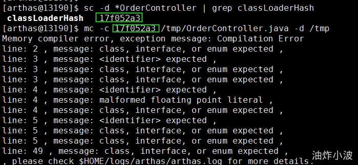 sc -d *OrderController | grep classLoaderHash mc -c 17f052a3 /tmp/OrderController.java -d /tmp