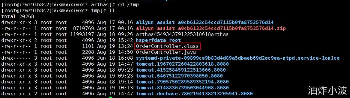 指令:jad com.arthas.controller.OrderController > /tmp/OrderController.java