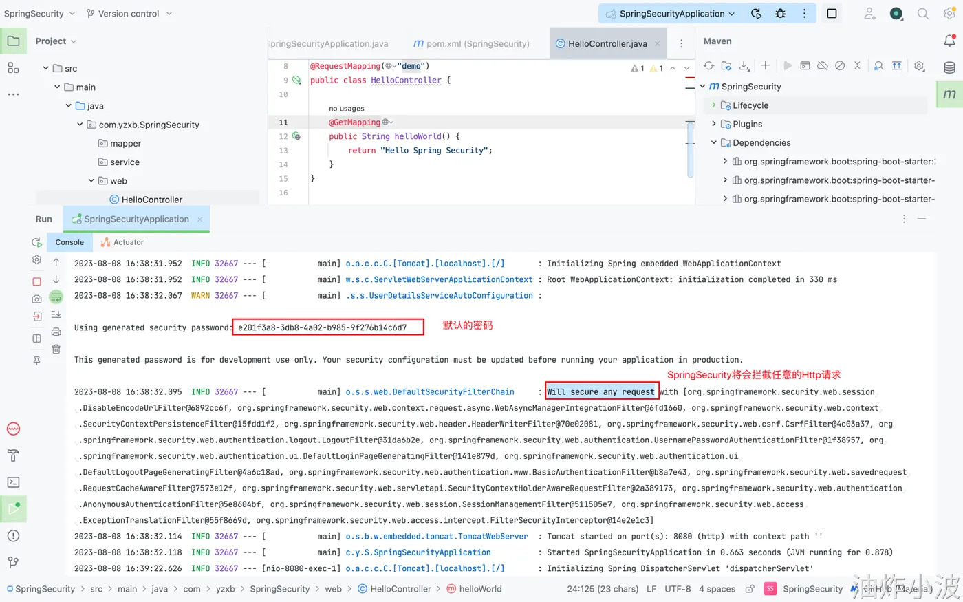 • 密码:控制台输出,这里就是:e201f3a8-3db8-4a02-b985-9f276b14c6d7