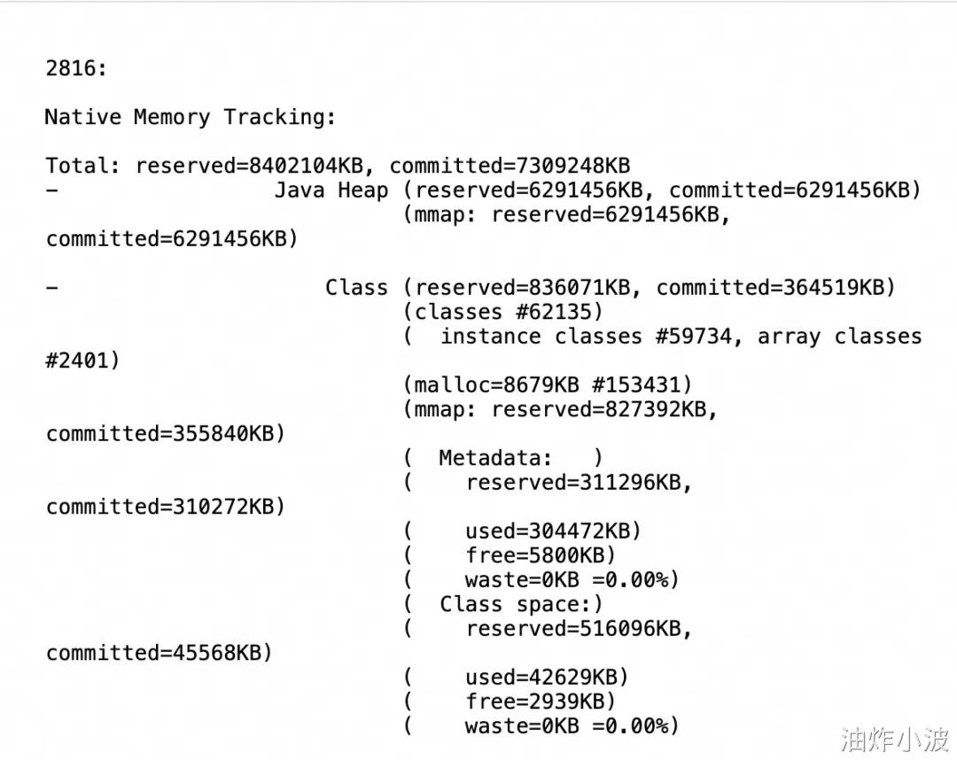 可以看到committed约为7G,这 5 GB 的差距主要由以下几部分组成,这些都是 NMT 无法追踪的: