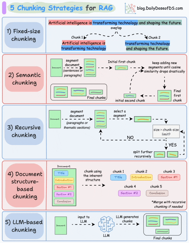 RAG五种分块策略(图片来源:DailyDoseofDS)