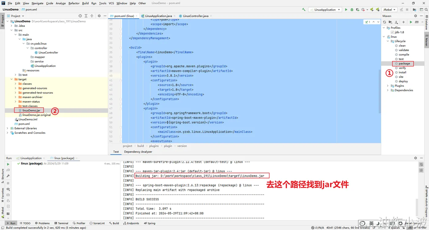 <?xml version="1.0" encoding="UTF-8"?> <project xmlns="http://maven.apache.org/POM/4.0.0" xmlns:xsi="http://www.w3.org/2001/XMLSchema-instance" xsi:schemaLocation="http://maven.apache.org/POM/4.0.0 https://maven.apache.org/xsd/maven-4.0.0.xsd"> <modelVersion>4.0.0</modelVersion> <groupId>com.yzxb</groupId> <artifactId>linux</artifactId> <version>0.0.1-SNAPSHOT</version> <name>linux</name> <description>Demo project for Spring Boot</description> <properties> <java.version>1.8</java.version> <project.build.sourceEncoding>UTF-8</project.build.sourceEncoding> <project.reporting.outputEncoding>UTF-8</project.reporting.outputEncoding> <spring-boot.version>2.6.13</spring-boot.version> </properties> <dependencies> <dependency> <groupId>org.springframework.boot</groupId> <artifactId>spring-boot-starter-web</artifactId> </dependency> </dependencies> <dependencyManagement> <dependencies> <dependency> <groupId>org.springframework.boot</groupId> <artifactId>spring-boot-dependencies</artifactId> <version>${spring-boot.version}</version> <type>pom</type> <scope>import</scope> </dependency> </dependencies> </dependencyManagement> <build> <finalName>linuxDemo</finalName> <plugins> <plugin> <groupId>org.apache.maven.plugins</groupId> <artifactId>maven-compiler-plugin</artifactId> <version>3.8.1</version> <configuration> <source>1.8</source> <target>1.8</target> <encoding>UTF-8</encoding> </configuration> </plugin> <plugin> <groupId>org.springframework.boot</groupId> <artifactId>spring-boot-maven-plugin</artifactId> <version>${spring-boot.version}</version> <configuration> <mainClass>cn.yzxb.linux.LinuxApplication</mainClass> </configuration> <executions> <execution> <id>repackage</id> <goals> <goal>repackage</goal> </goals> </execution> </executions> </plugin> </plugins> </build> </project>