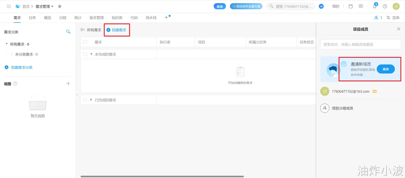 (3)创建需求,邀请成员