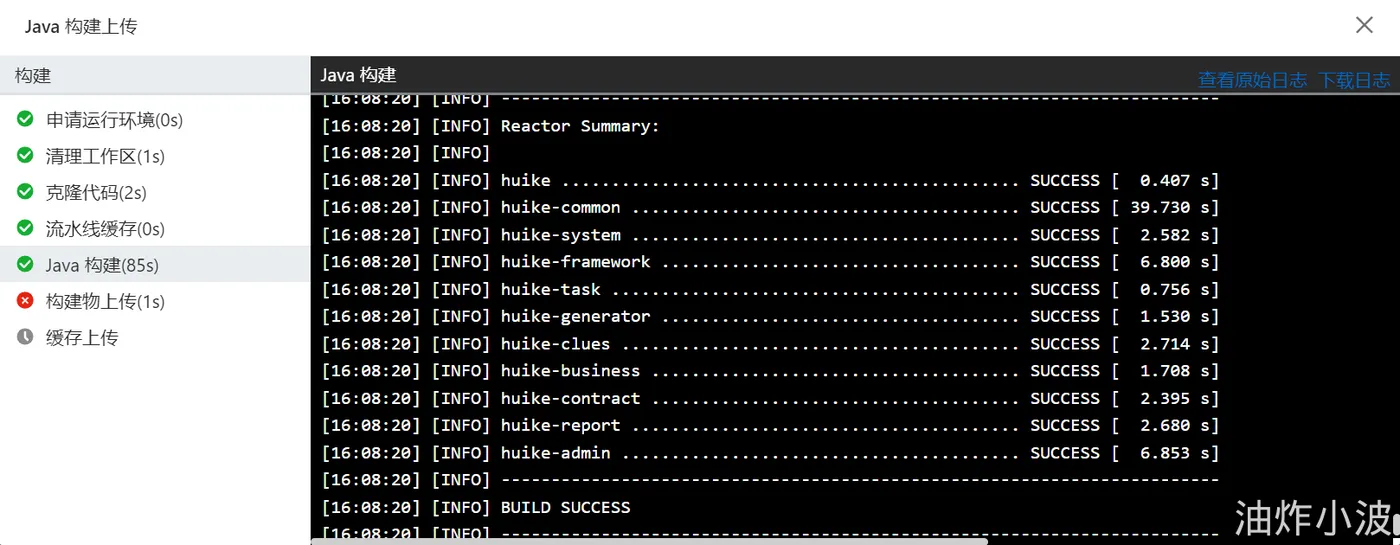 - 点击上面中间模块的:日志,可以看到项目开始构建打包