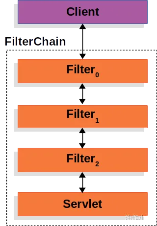 public void doFilter(ServletRequest request, ServletResponse response, FilterChain chain) { // 1-延迟获取注册为 Spring Bean 的 Filter Filter delegate = getFilterBean(someBeanName); // 2-将工作委托给 Spring Bean delegate.doFilter(request, response); }