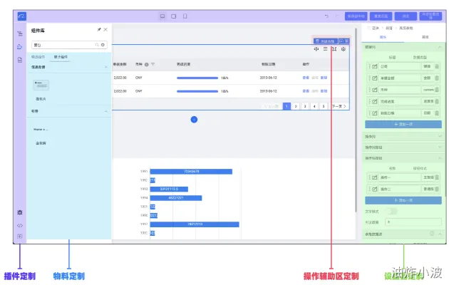一般形如以下的界面,用户可以通过拖拽形式生成页面元素(前端页面表单),