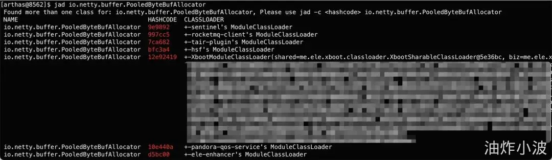 这个应用是饿了么弹内的应用,io.netty.buffer.PooledByteBufAllocator,有7个ClassLoader加载了它,分别: