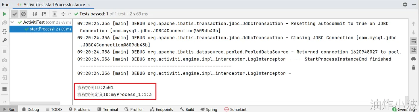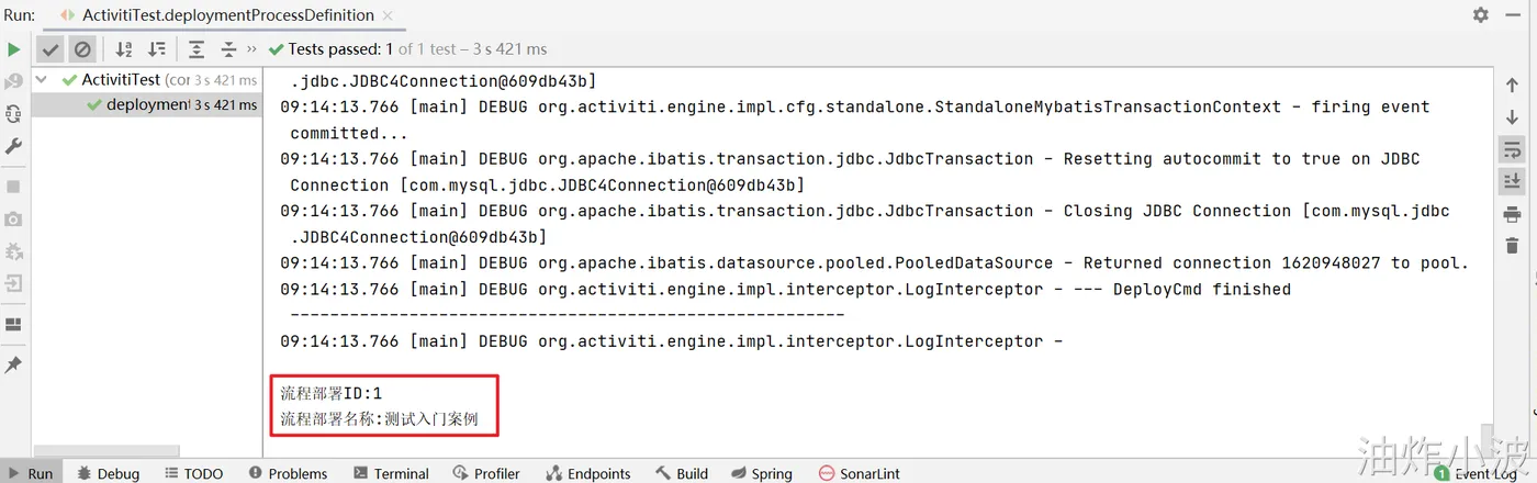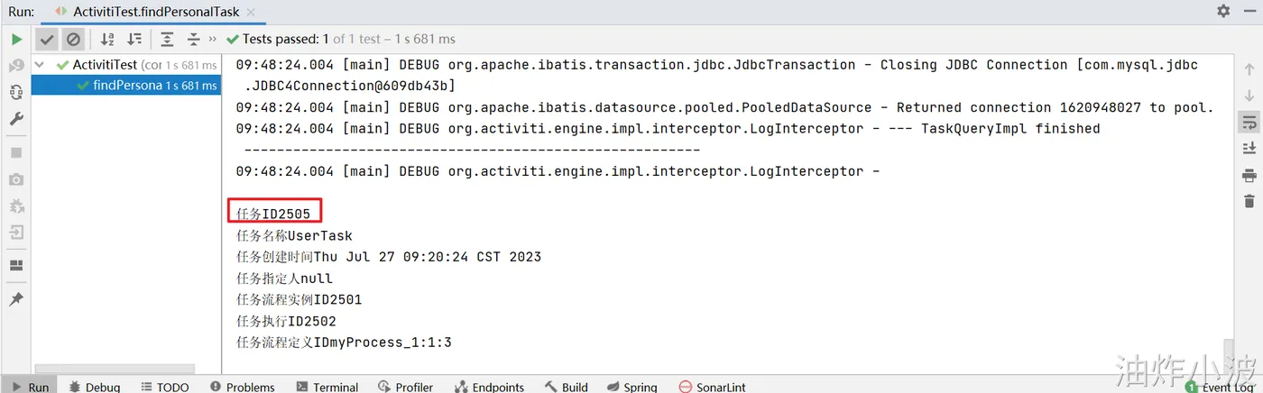 这就验证了我们的流程定义代码测试成功。相当于我们公司现在有了一个单节点的审批流程,后面就等着用户发起,这个流程就可以使用起来。