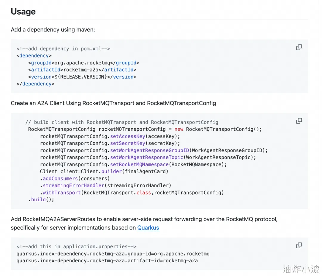 基于 RocketMQ 实现的 A2A 通信 RocketMQTransport 部分代码现已开源,项目地址点击跳转