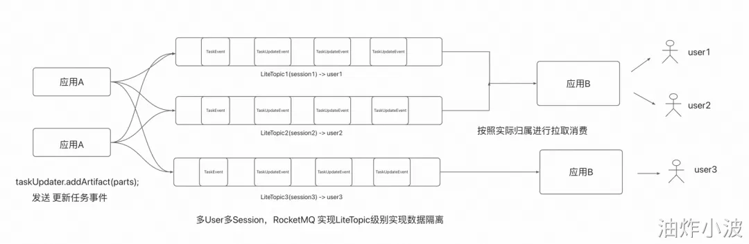 通过轻量级 LiteTopic 实现会话级隔离(如 Session ID 作为 LiteTopic 的唯一标识),确保多用户/多会话并行运行时互不干扰。多用户多 Session 的消息存储于不同的 LiteTopic,在数据存储维度实现天然隔离,无需应用层手动过滤。
