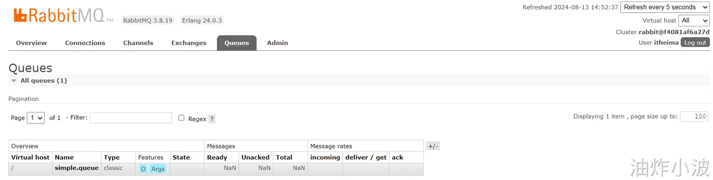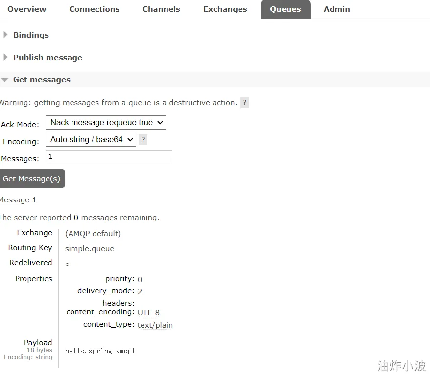 我们可以在RabbitMQ的控制台去查看消息