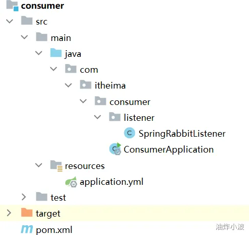然后在consumer服务的com.itheima.consumer.listener包中新建一个类SpringRabbitListener,代码如下:
