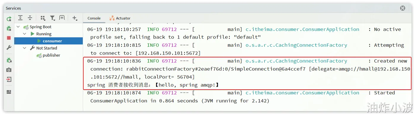 - 在publisher服务中运行测试代码,发送MQ消息。