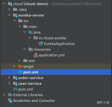 至此,eureka已完成创建、部署、访问。至此工程目录结构如下