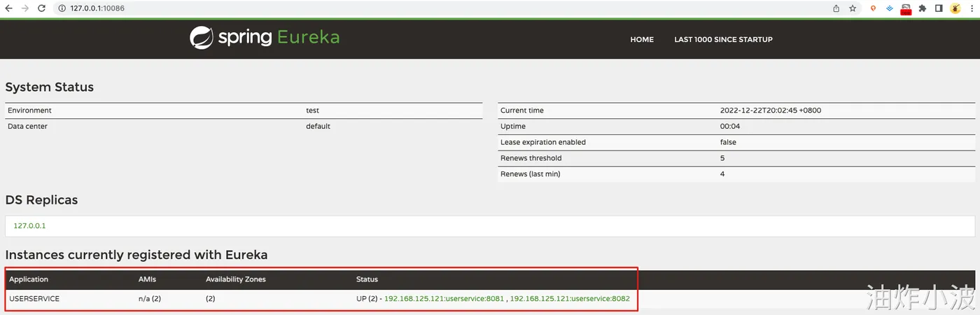 启动应用并查看Eureka信息,此时变成两个活跃实例