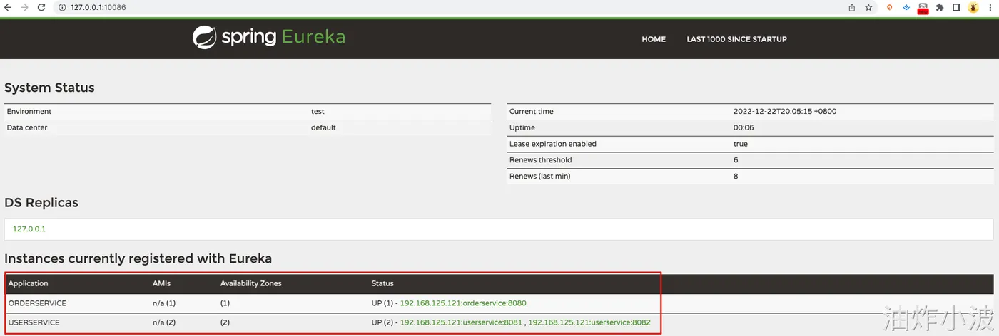 - 确保优先启动Eureka,而后启动user-service、order-service