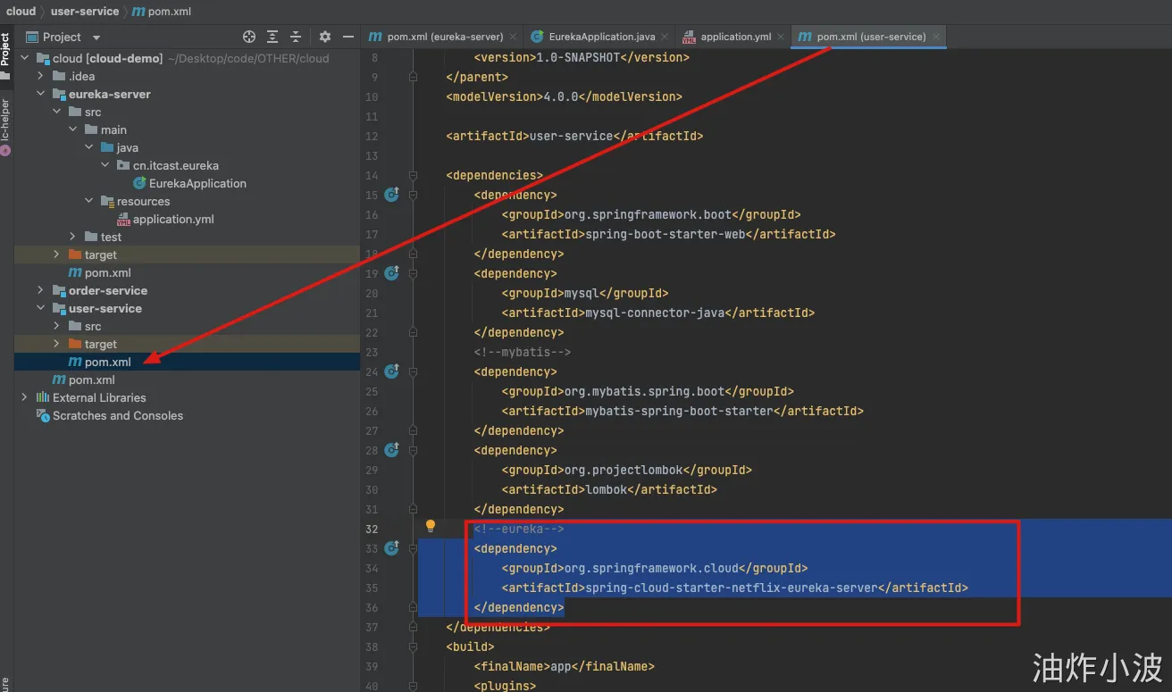 重复user-service操作,pom文件依赖操作完全一致,但配置文件中应用名称不同,在此单独贴出