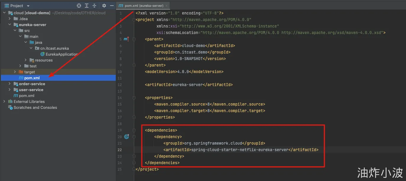 <dependencies> <dependency> <groupId>org.springframework.cloud</groupId> <artifactId>spring-cloud-starter-netflix-eureka-server</artifactId> </dependency> </dependencies>