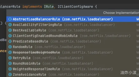 通过查看IRule实现类,可以做其余负载均衡实现方案的更多测试