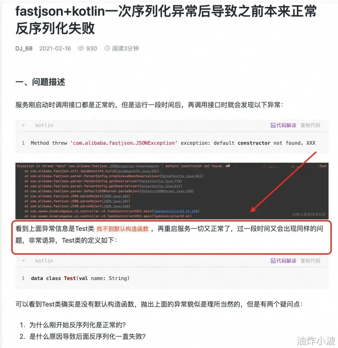 文章对FastJson剖析挺深,感觉我们的工程不至于这么奇葩吧。还提到了什么getKoltinConstructorParameters、Unit变量、kotlin_error标记位问题。核心原因是有个静态标记位被置为异常状态。