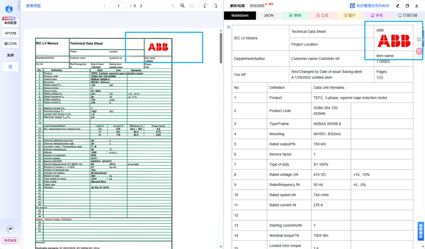 在过去,面对像 ABB 这种工业级文档,需要花费了大量时间在人工录入和校对上。而通过引入 TextIn 的高精度解析,我们不仅解决了“识别”问题,更解决了“理解”问题。对于企业而言,这意味着原本躺在硬盘里的几十万份 PDF 规格书,终于变成了可以被数据库调用、被 AI 分析的高价值数据资产。