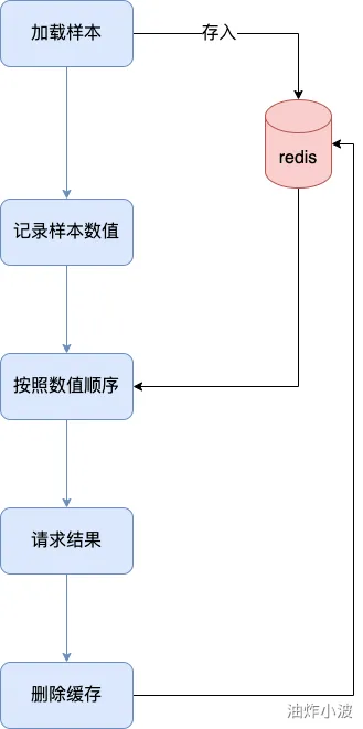 解决逻辑也很简单,例如在加载数据时,将其按照样本加载数据一条一条存入redis缓存,然后我们只需要知道样本中有多少的数量,按照数量的先后顺序从缓存中取出数据,即可解决该问题。